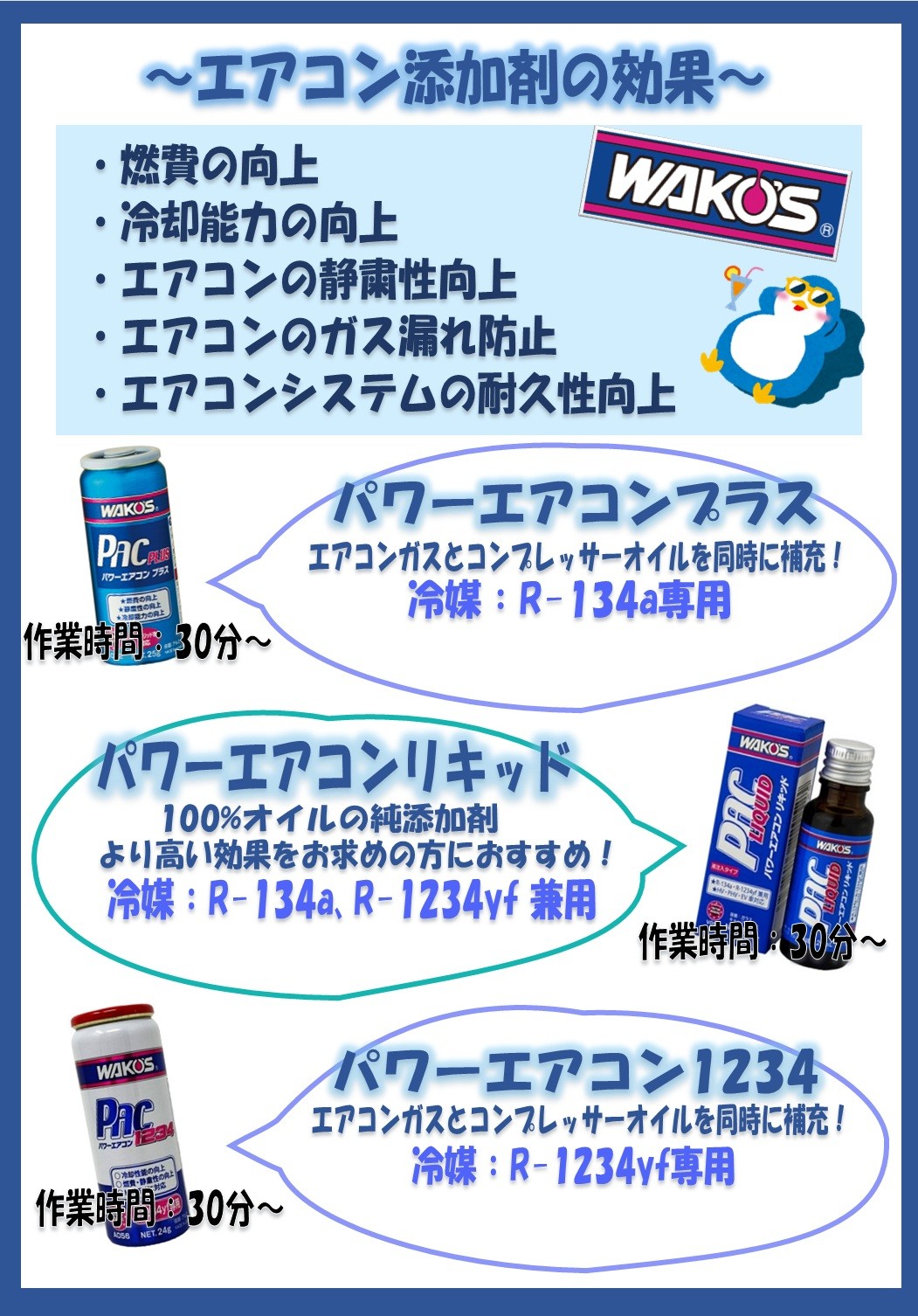 エアコン添加剤やってます!WAKO'Sのパワーエアコンシリーズ