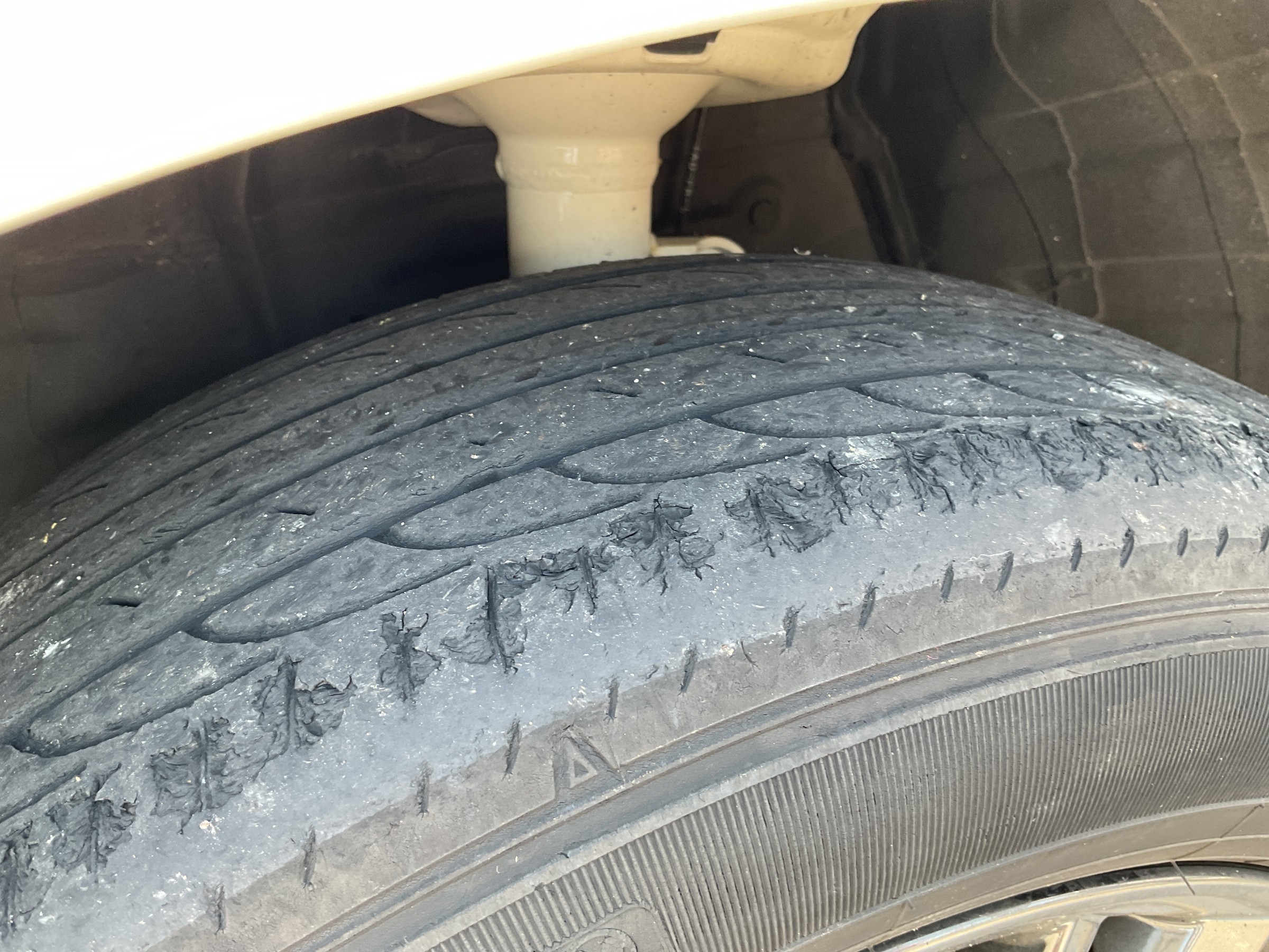 外側ショルダーが削れてボロボロになってました。