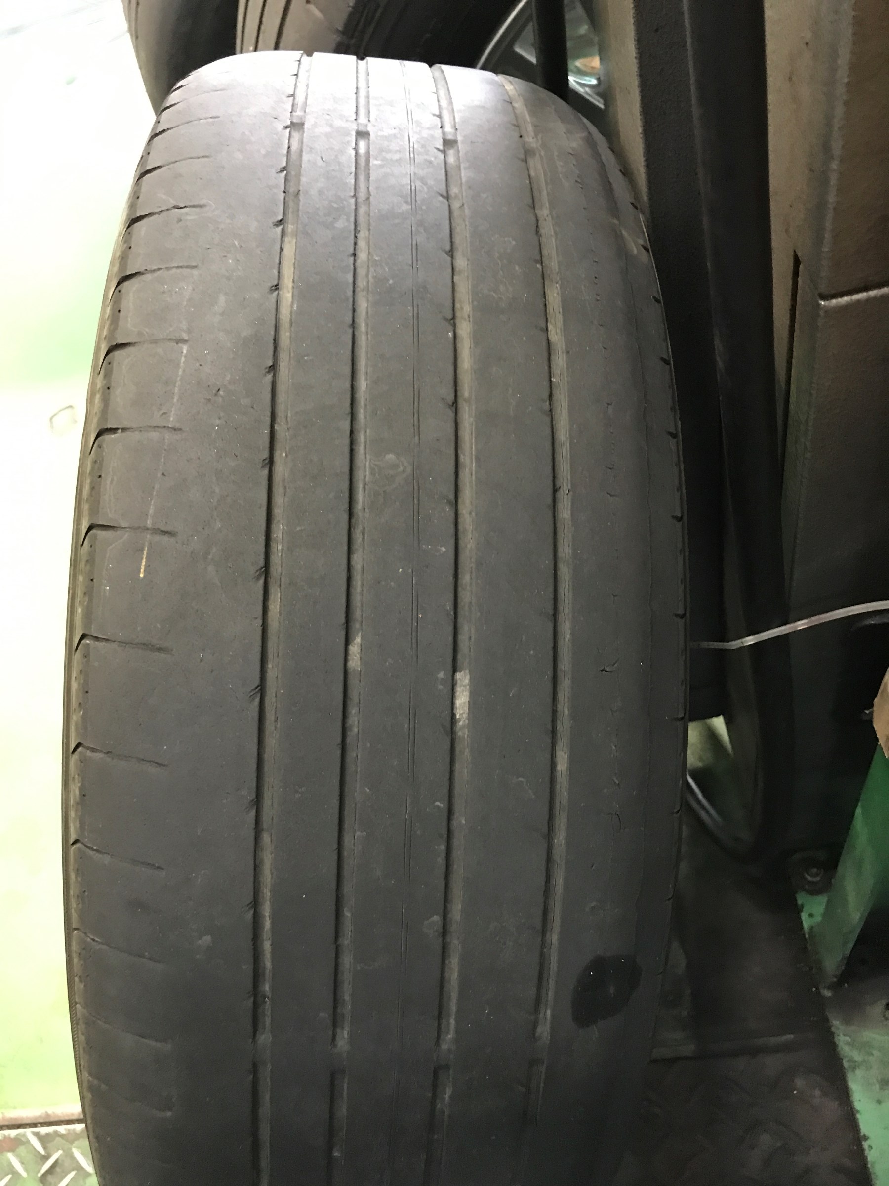 装着されていたタイヤを点検させていただいた時、両肩が減っていたので