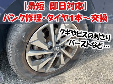タイヤのエアーが漏れている タイヤが破れてしまった(バースト) など・・・ タイヤのトラブルはタイヤ館磯子店へお任せください! ご相談はご来店だけでなくお電話でも承っておりますので まずはお気軽にご相談ください♪ 無料タイヤ点検も承っておりますので 点検だけのご来店でもOKです(*'▽')/ パ...