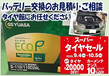 いつもタイヤ館磯子店のHPをご覧いただき 誠にありがとうございます。 秋に起きやすいお車のトラブルのひとつ バッテリートラブル 気温が下がり始めるこの季節 気温が低くなると電気を蓄え能力が低下しバッテリーが上がりやすくなります。 夏のエアコン使用で酷使したあとという事もあり バッテリー...