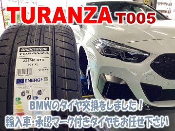 いつもタイヤ館磯子店のHPをご覧いただき 誠にありがとうございます。 先日、BMWのタイヤ交換をご依頼いただきました♪ 何シリーズか車種の詳細を控えるの忘れちゃいました… 申し訳ございません(-_-;) タイヤはTURANZA(トランザ) T005 国内車、欧州車の新車装着のモデルです。 お取り寄せさせてい...