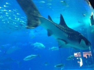 美ら海水族館ではジンベイザメが優雅に泳いでいました。