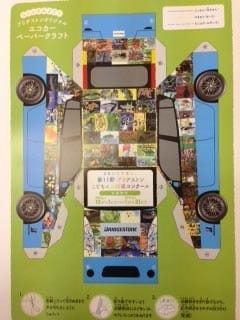 裏面にはエコカーペーパークラフトがついているので、作業の待ち時間