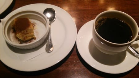 飲み物はコーヒーをチョイス、しかもお代わりOKだし、デザートには