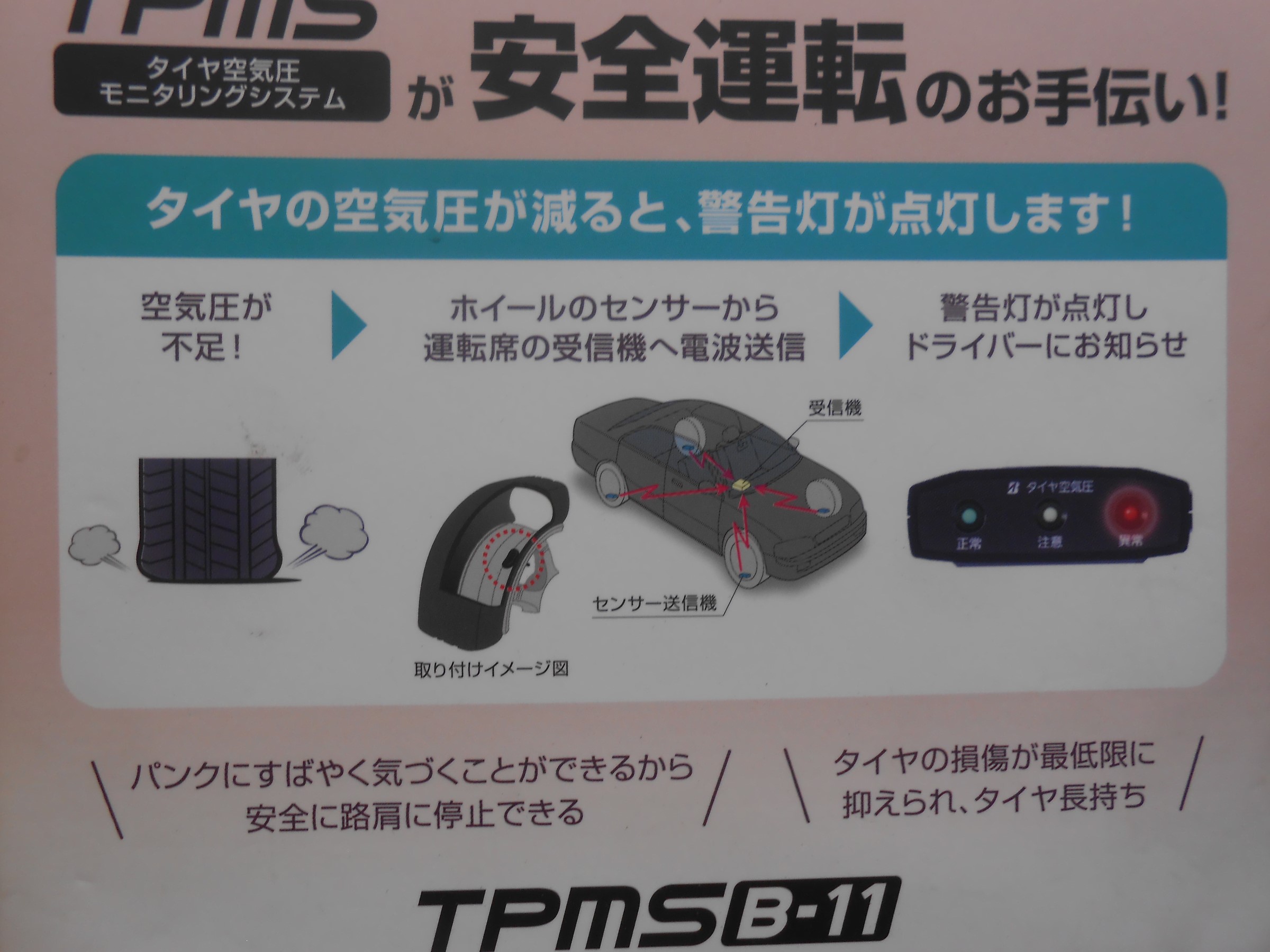 パンクひきずり予防には空気圧センサーTPMSがおすすめ!!
