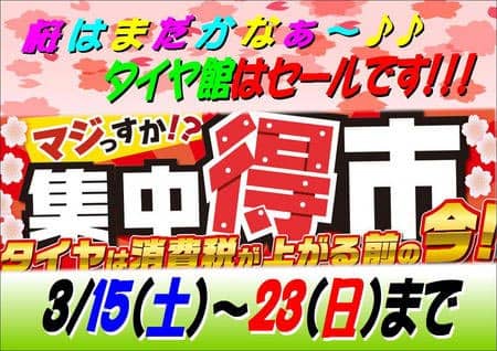 3/15日~23日まで『集中得市』やっています。