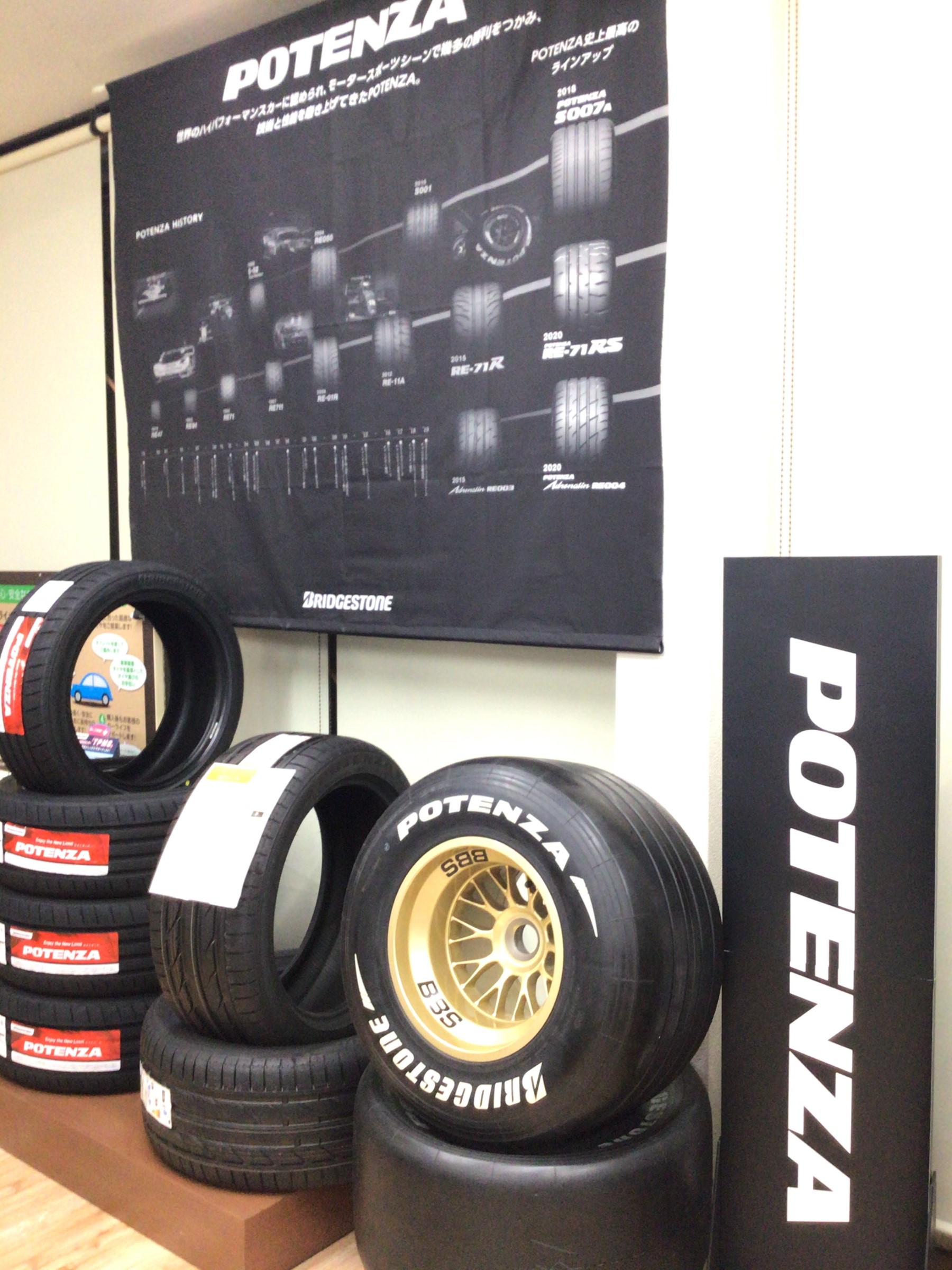 さて板橋店のPOTENZAコーナーです。 ちょっと懐かしいデモ品を飾っています。