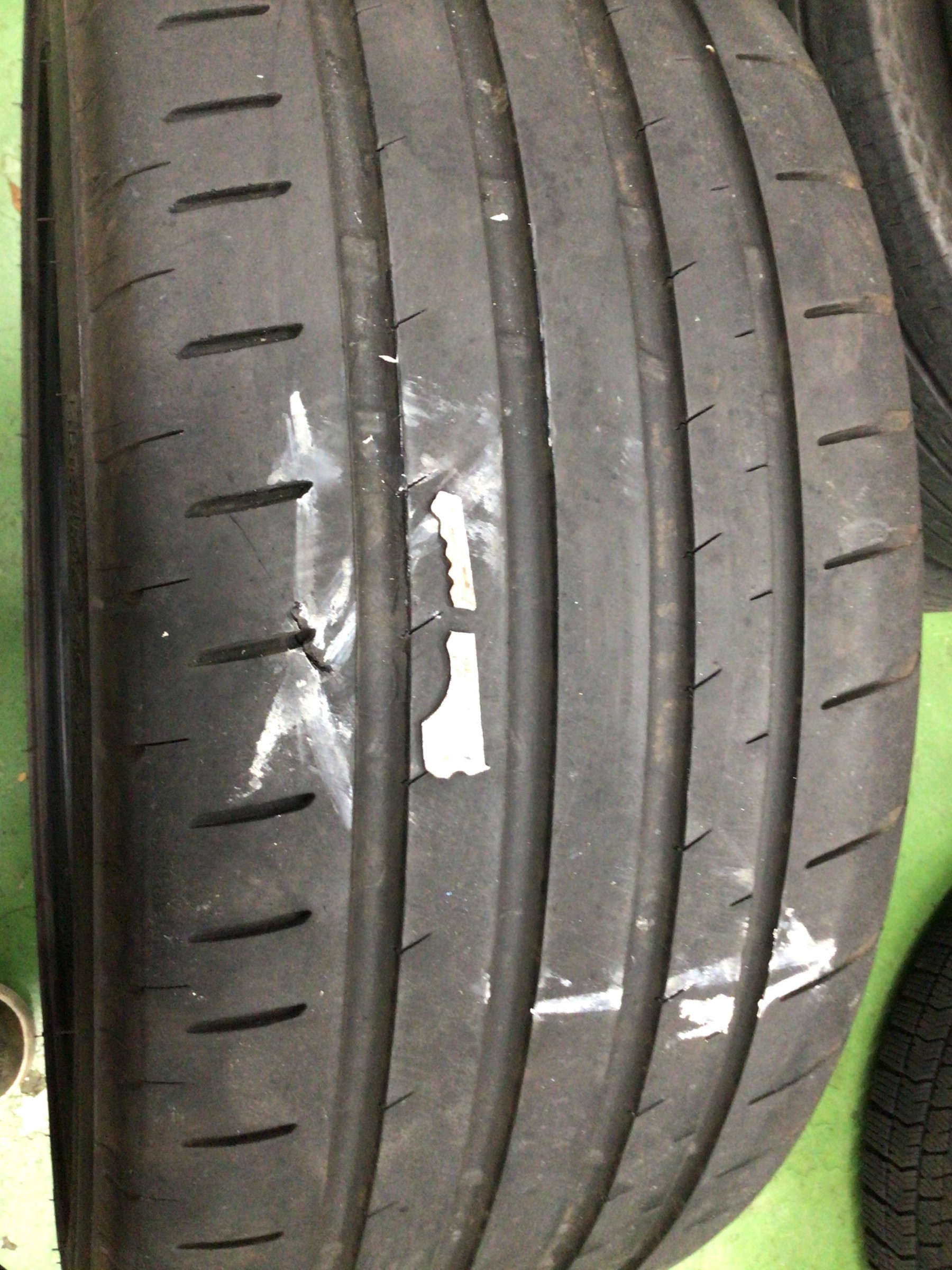 写真からは何か金属片の様な傷ですが、修理は出来るか?出来ないか?とタイヤ外してみました・・・