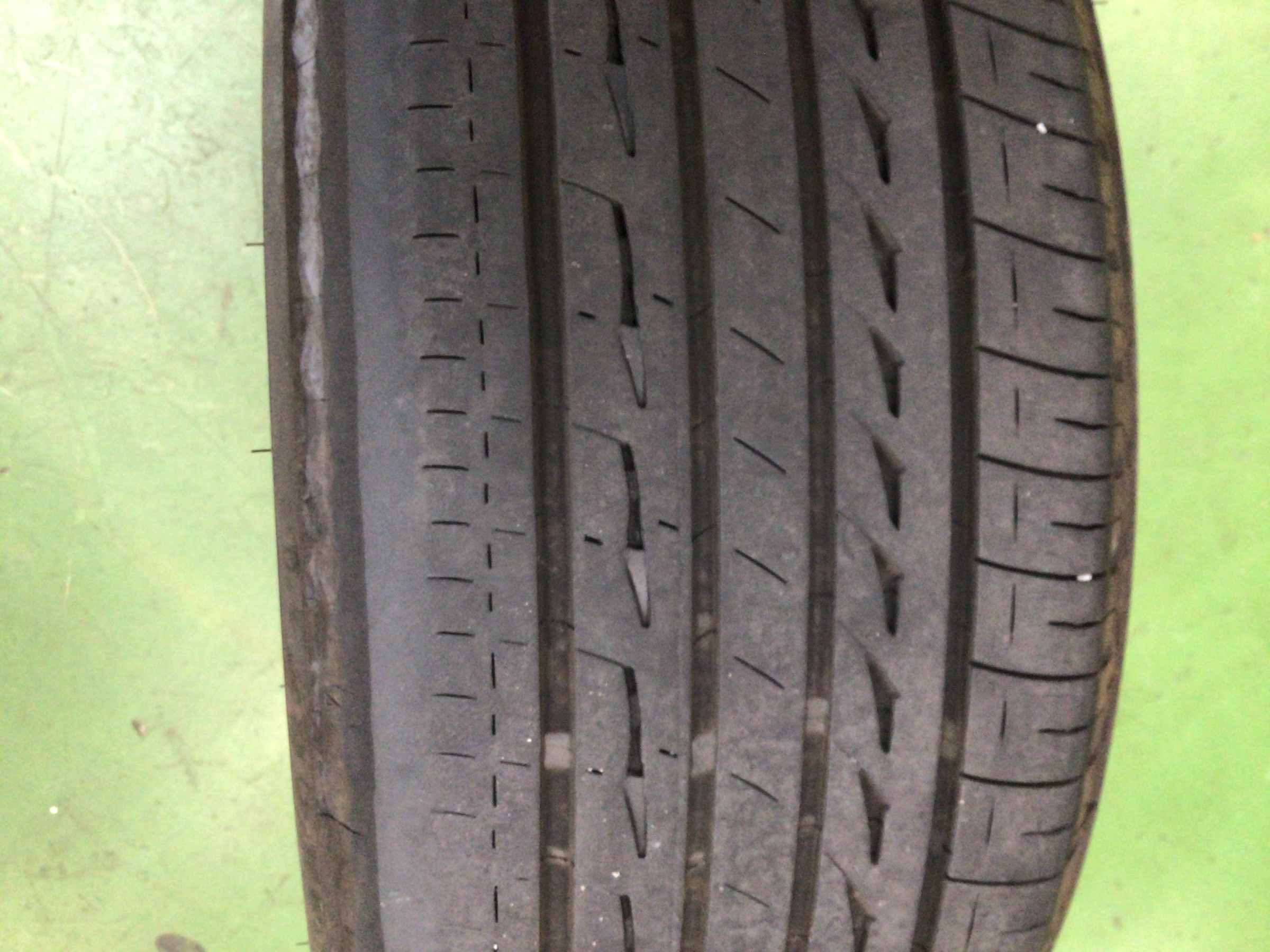 タイヤをお車から外してみると・・・なんと内側が溝が無くなっていました。