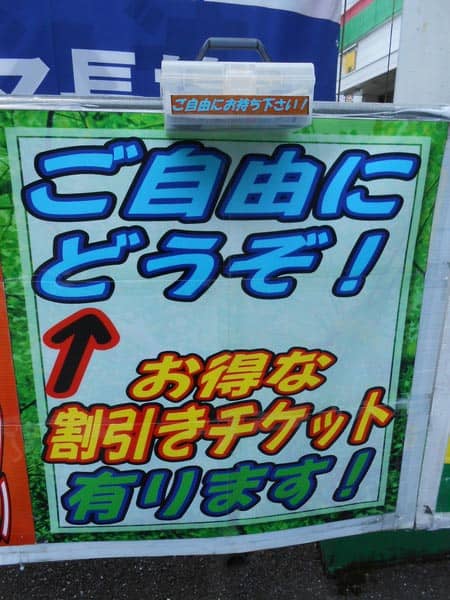当店の側道にご近所の歩行者、自転車の方に是非、お得なチケットを