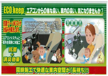 車内に霧状に消臭剤を散布し、エアコンの熱変換機エバポレーターまで