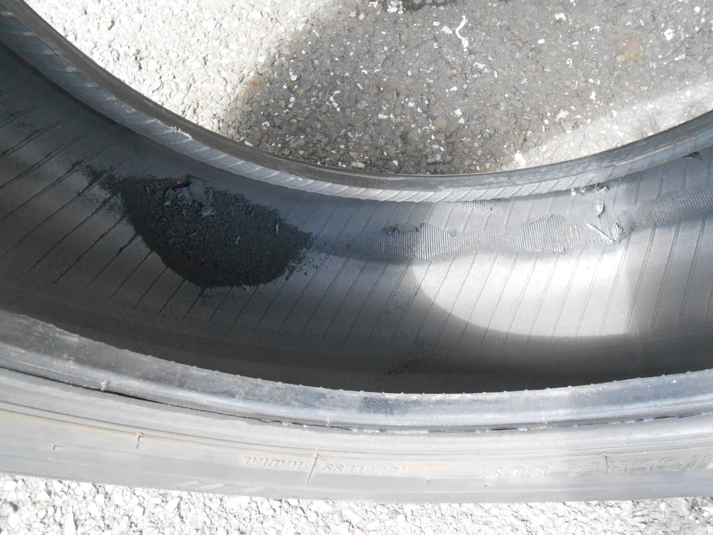 写真はパンクに気づかず走られていたお客様の写真です・・・。