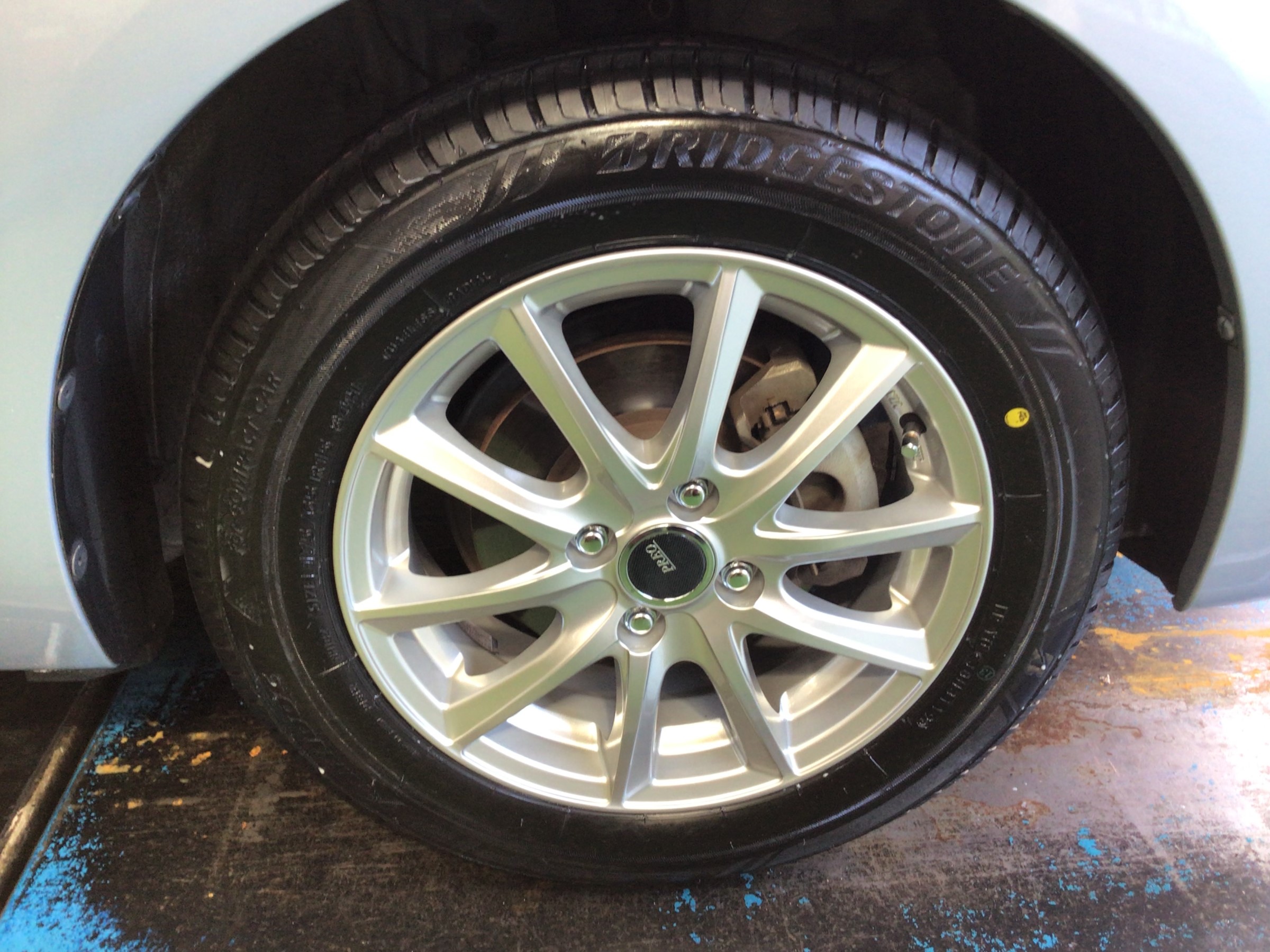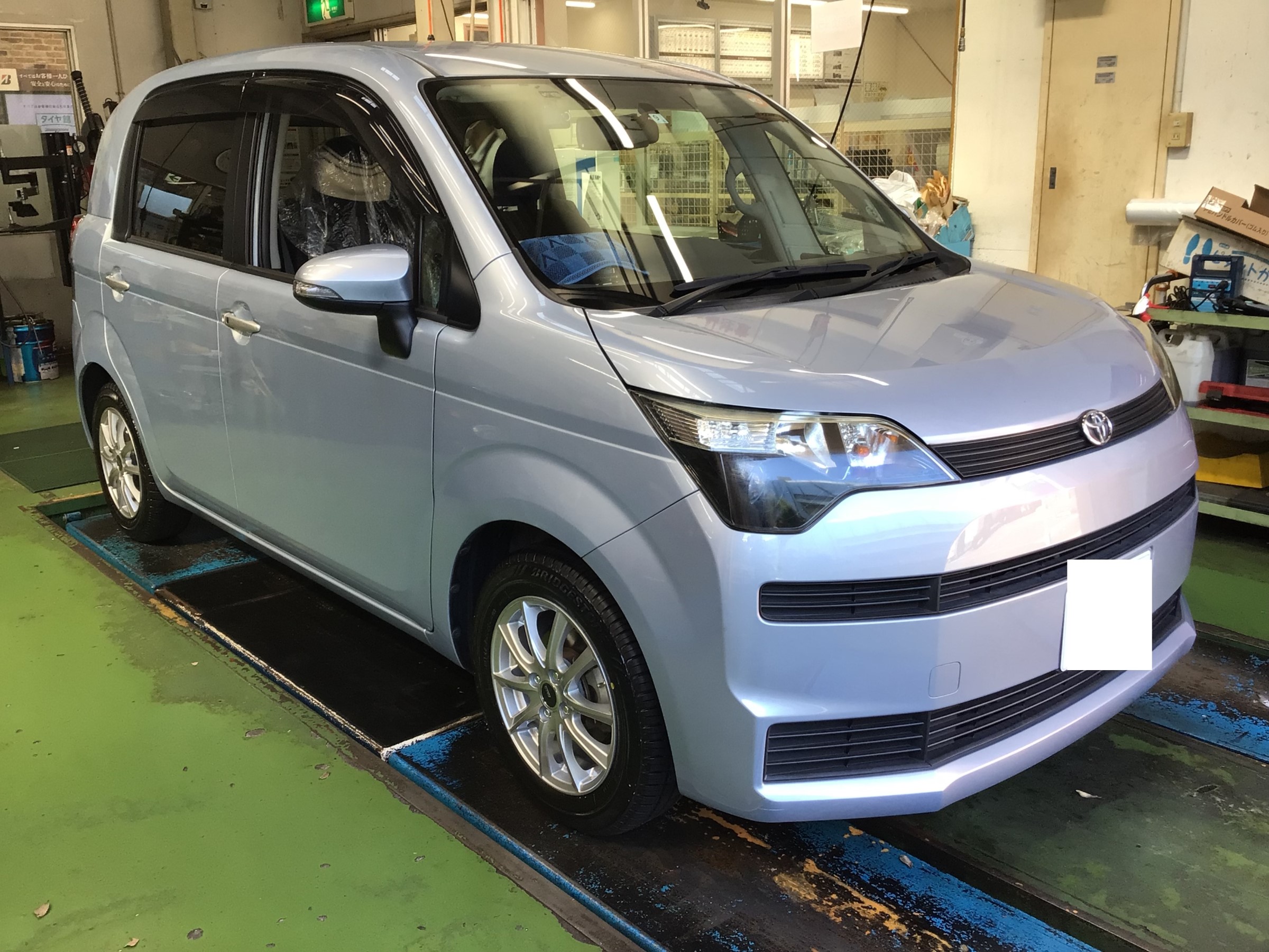 TOYOTA スペイドです。 スチールホイールでしたが、気分を一新してセットで交換。