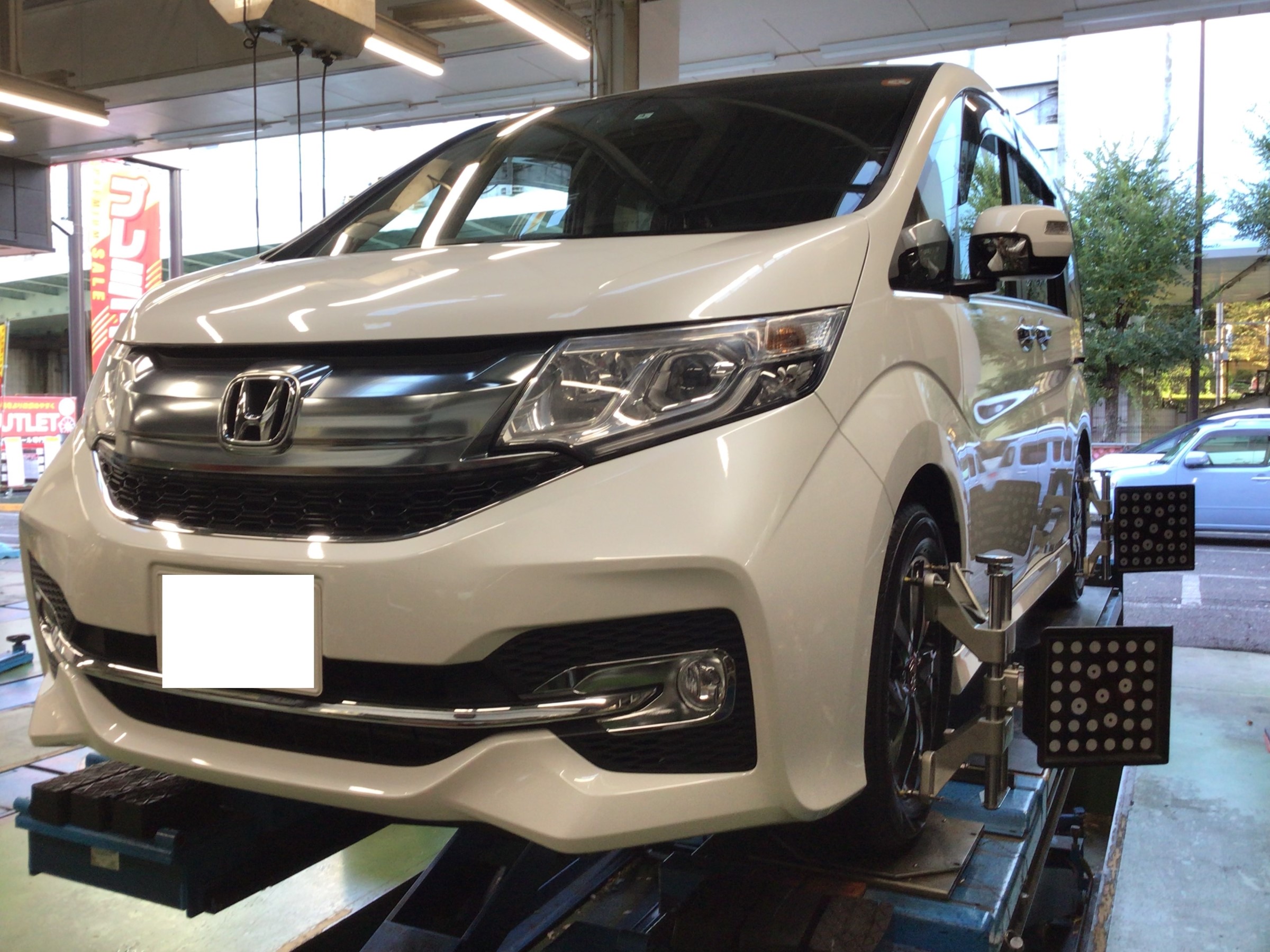 さて本日はステップWのお客様でタイヤ交換&アライメント作業のご紹介。