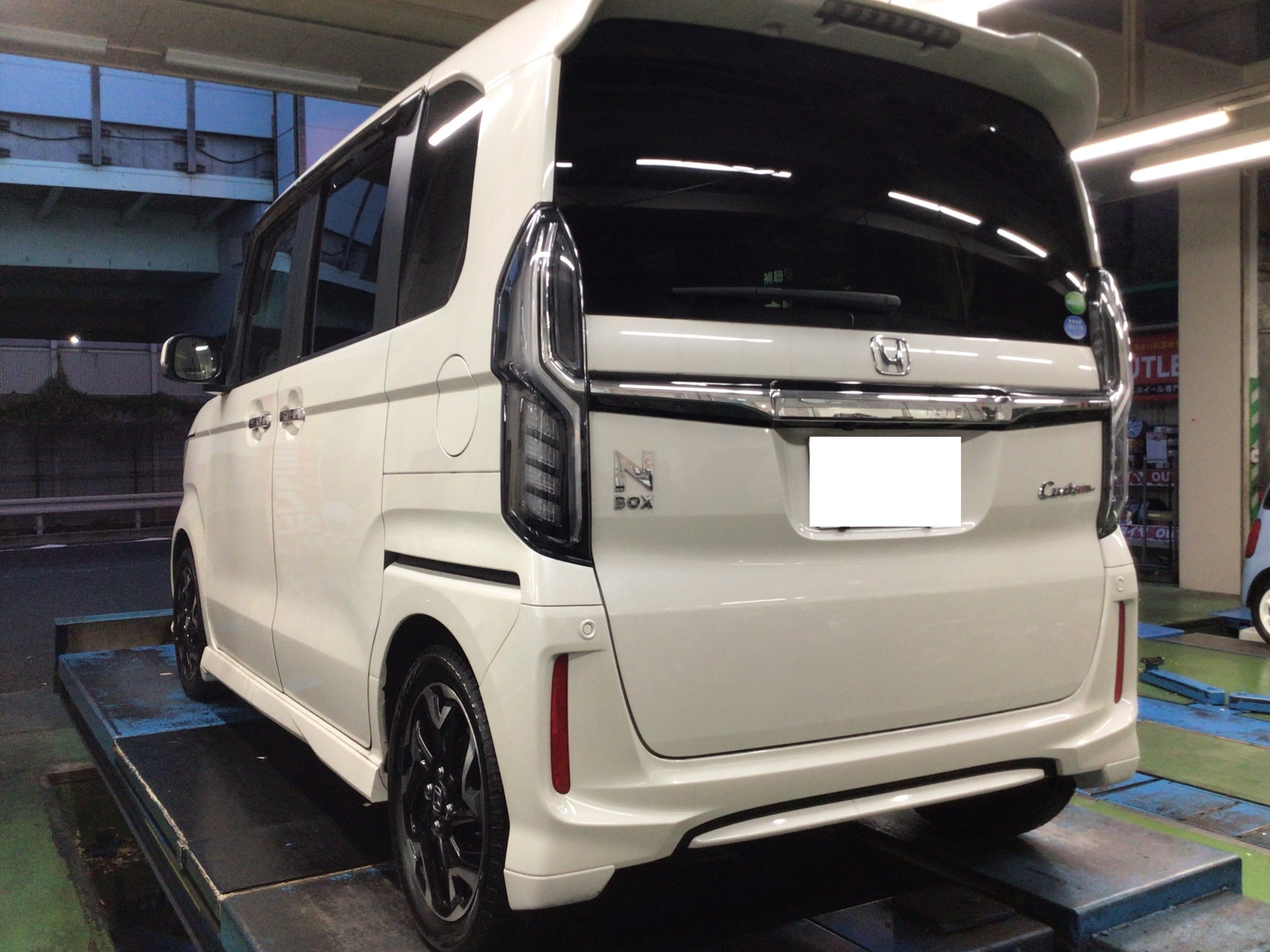 本日早速スタッドレス装着のお客様ご来店しました。『ホンダ N-BOX』です。