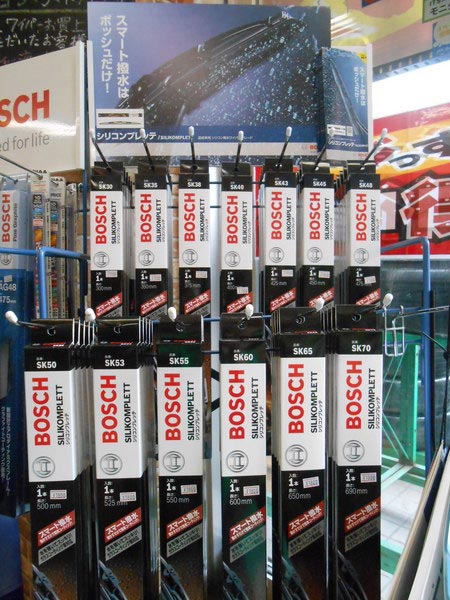 タイヤ館ではBOSCHの撥水機能のワイパーとお求めやすいワイパー用意しています。