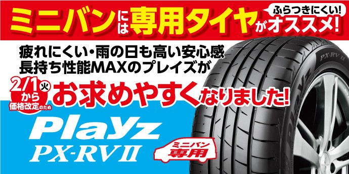 2/1からPlayz PX-RV2がお求め安くなりました!! ポスト 2022年2月1日 いつもご覧いただきありがとうございます! 2/1からPlayz PX-RVⅡがお求め安くなります!! ミニバンにはミニバン専用タイヤを!! 今までより、お買得になっておりますので、 タイヤの値上がり前にぜひご来店ください!! カテゴリ:お知らせ