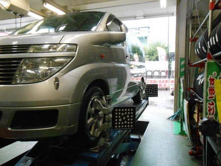 3枚目:エルグランドをタイヤ交換していただき車の骨盤調整をしていただきました。