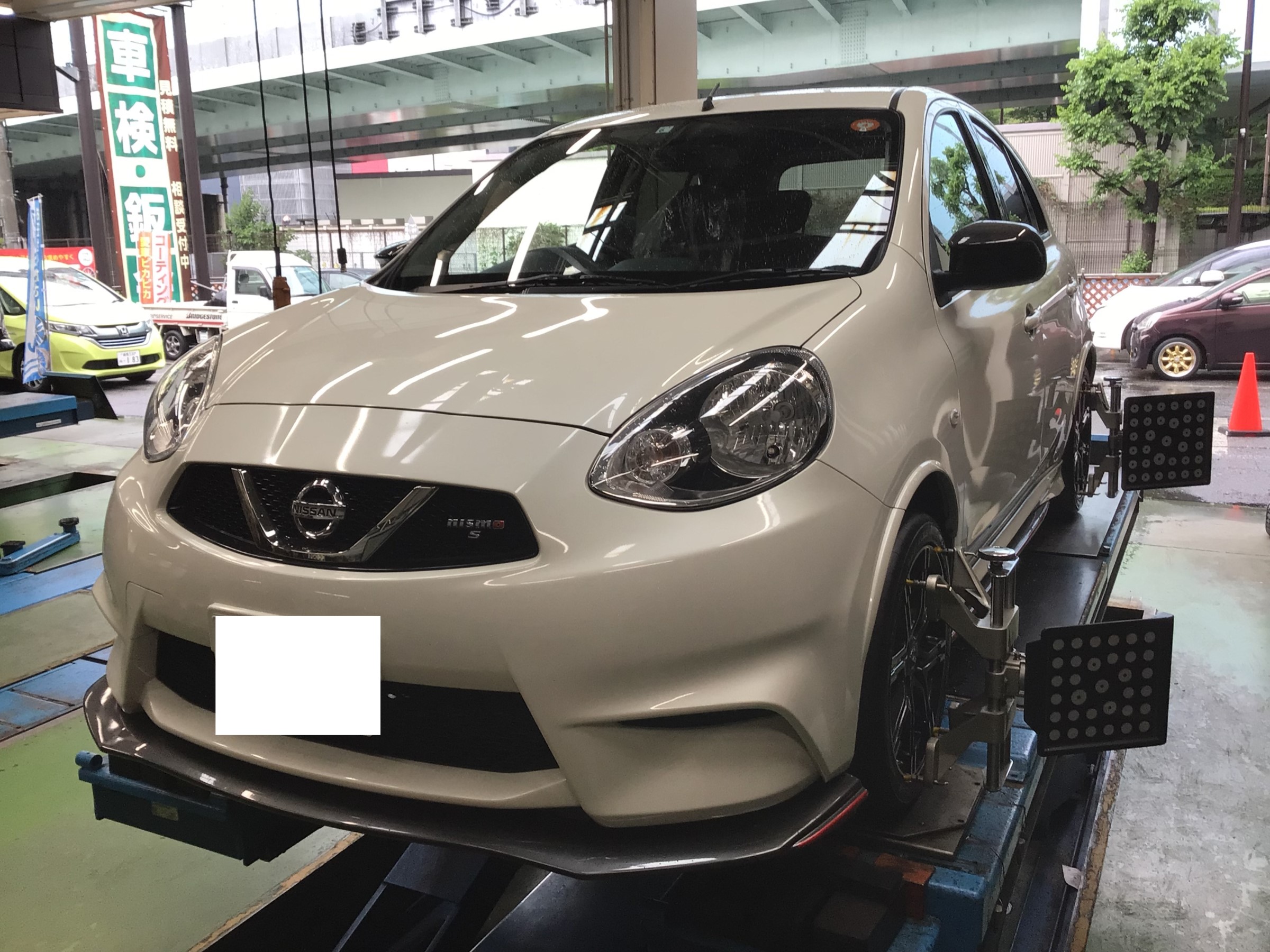 さて本日は『マーチNISMO』でのタイヤ交換&アライメント実施いたしました。