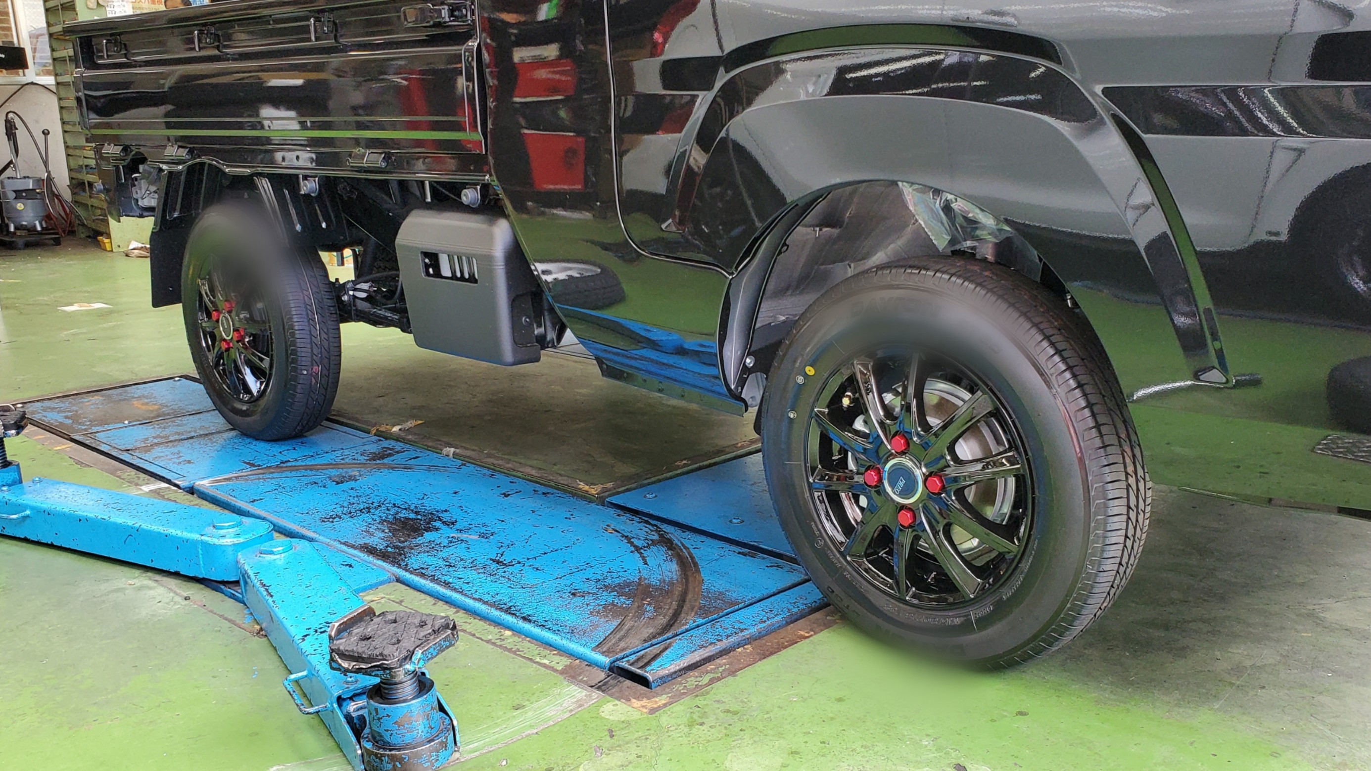 本日は納車したばかりのハイゼットトラックにアルミホイールをお取り付けさせて頂きました!