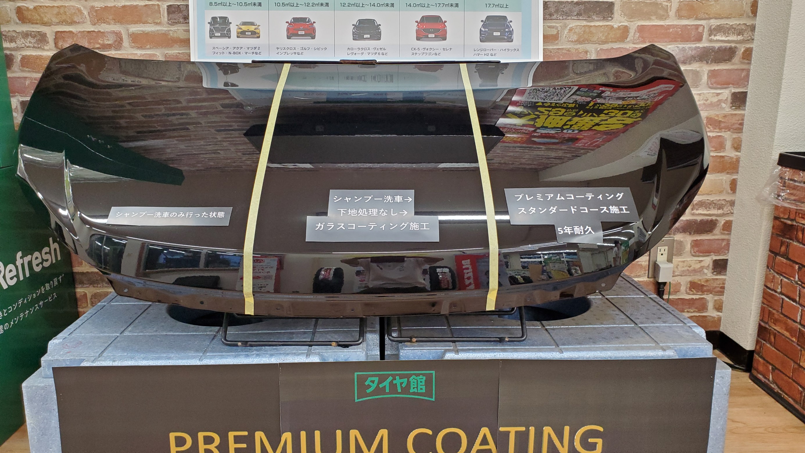 タイヤ館板橋では、ボディーコーティングの体感サンプル展示中です!