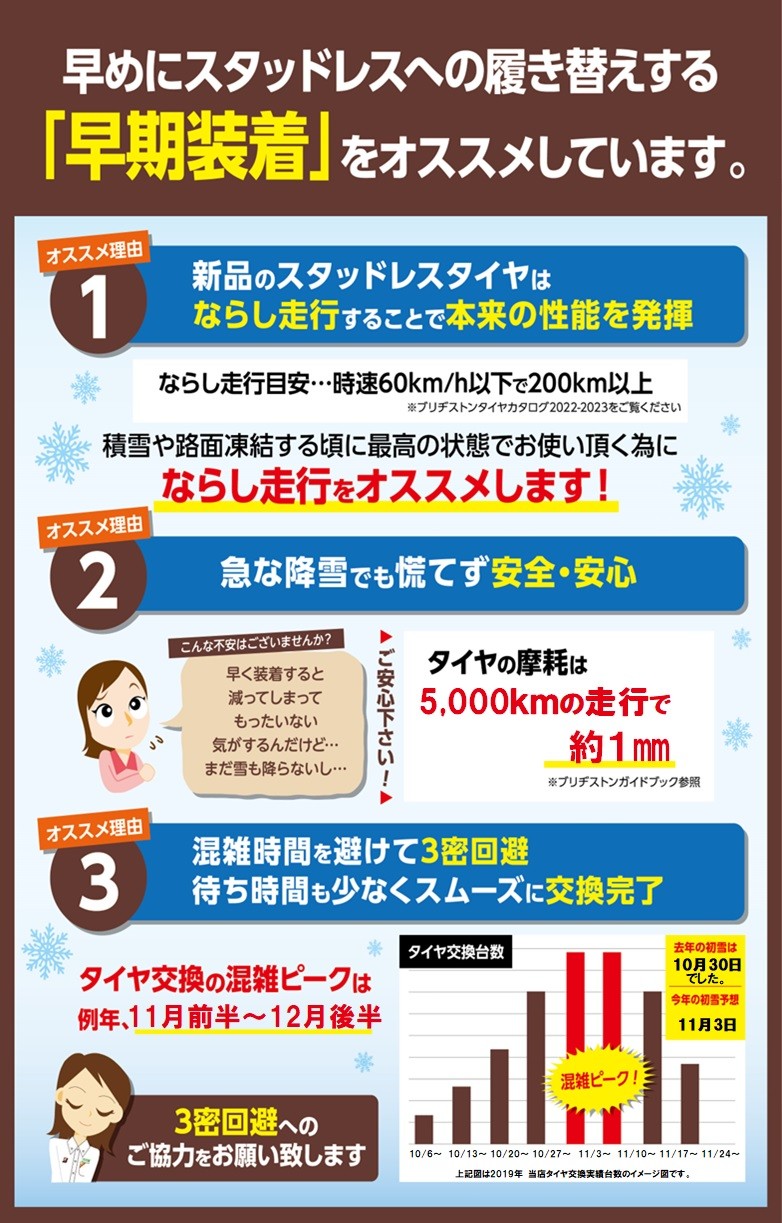 スタッドレスタイヤの「早期装着」をオススメします!!