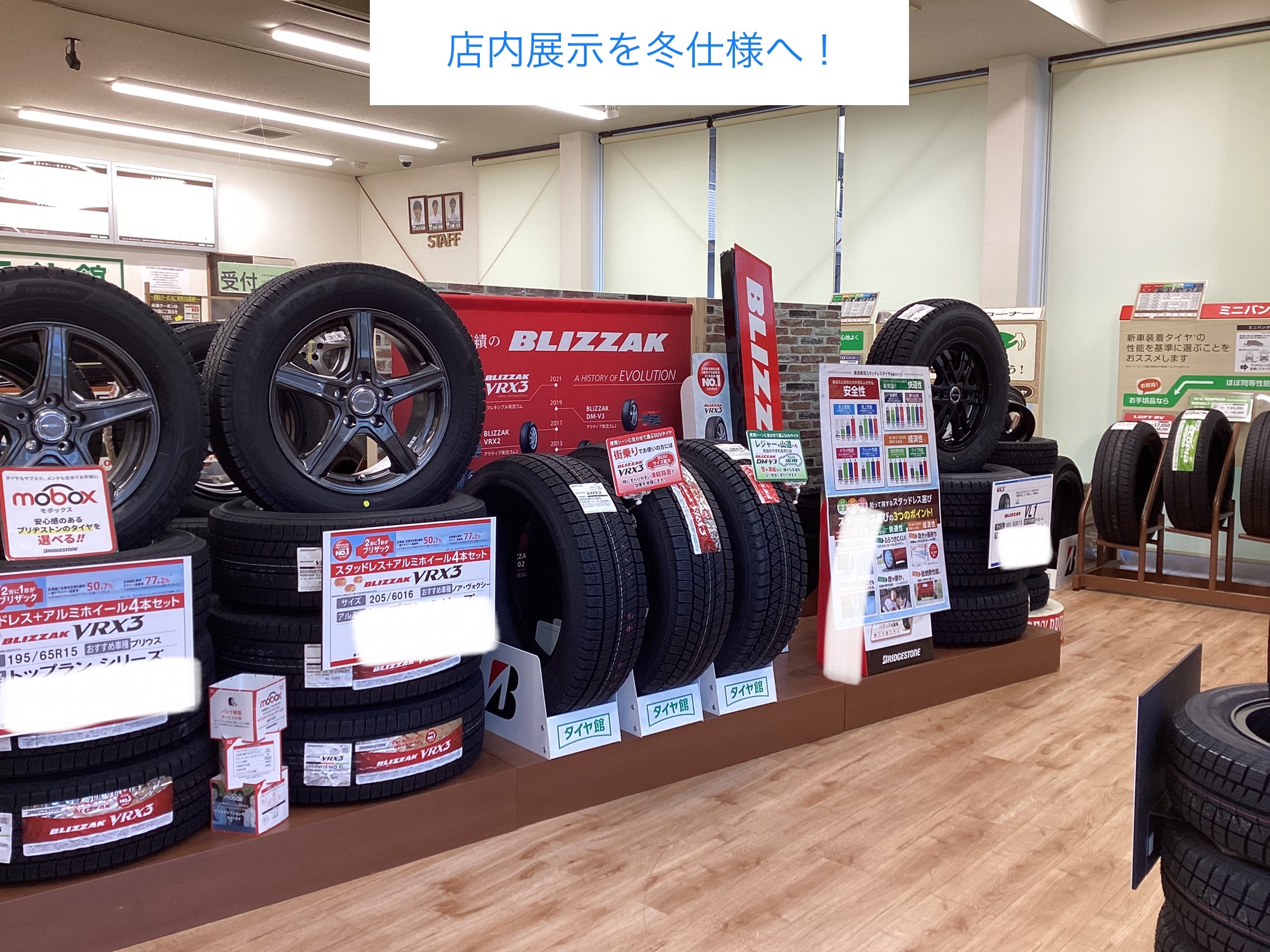 店内展示をスタッドレスタイヤに展示変更しました!