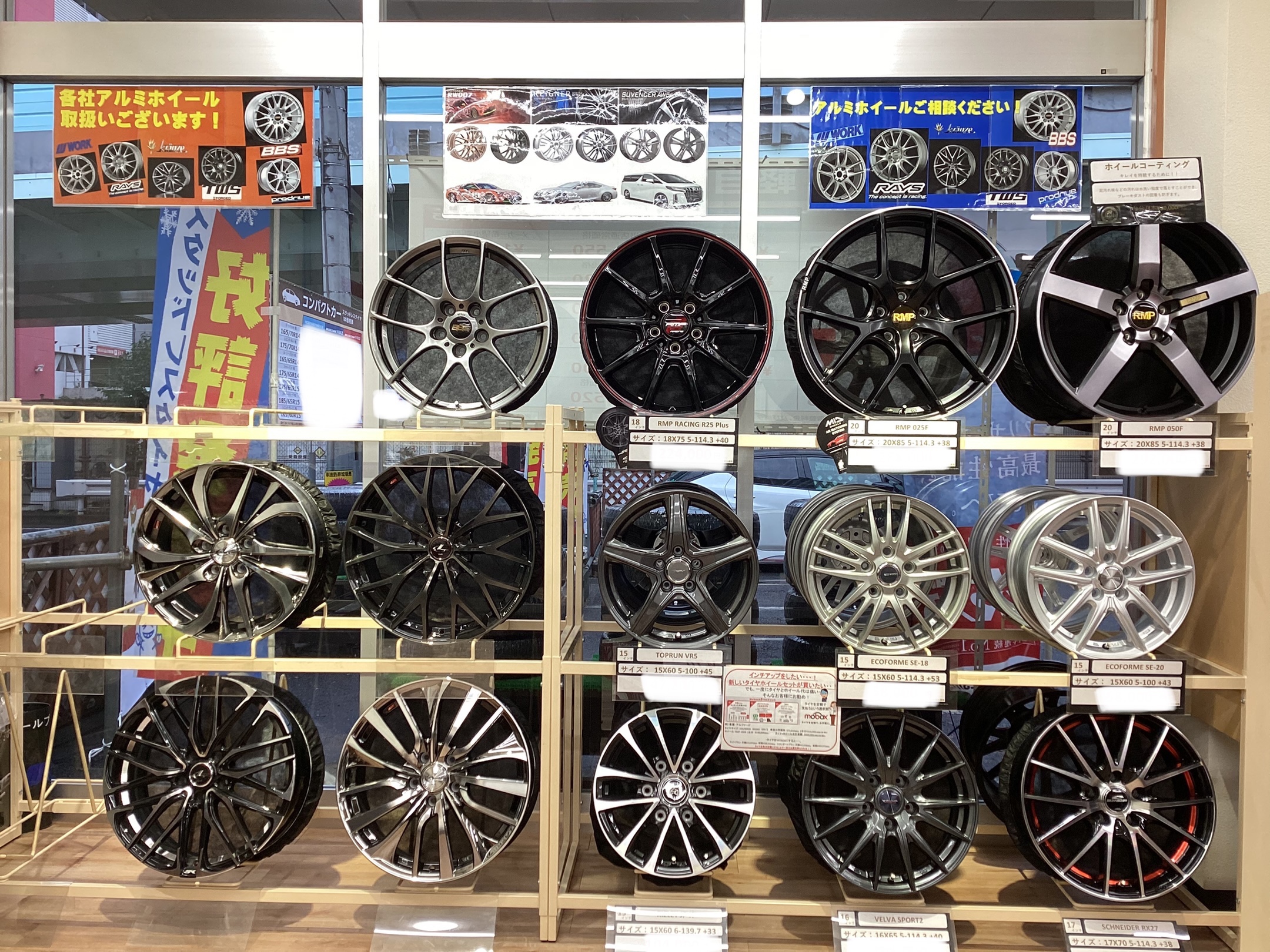 履き替えシーズンも落ち着いたので、ホイール展示を入れ替えました!