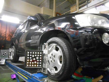 画像3:クルーガーにタイヤ交換後アライメント作業です。