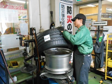 画像3:極太タイヤですが、専用チェンジャ-にて