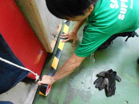 今日は天気も良いので、作業ピットでの事故が無いよう機材の周りに警告マーク
