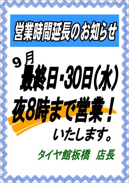 タグ:タイヤ館板橋 9月30日 営業時間:AM10:00~PM8:00まで