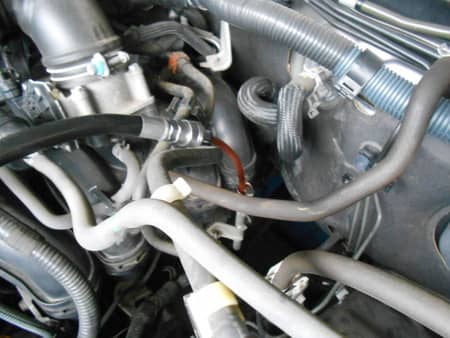 ボンネット内のATFオイルのレベルゲージのささっている場所からマシーンがオイルをチューっと抜いてチューっと入れてくれます。