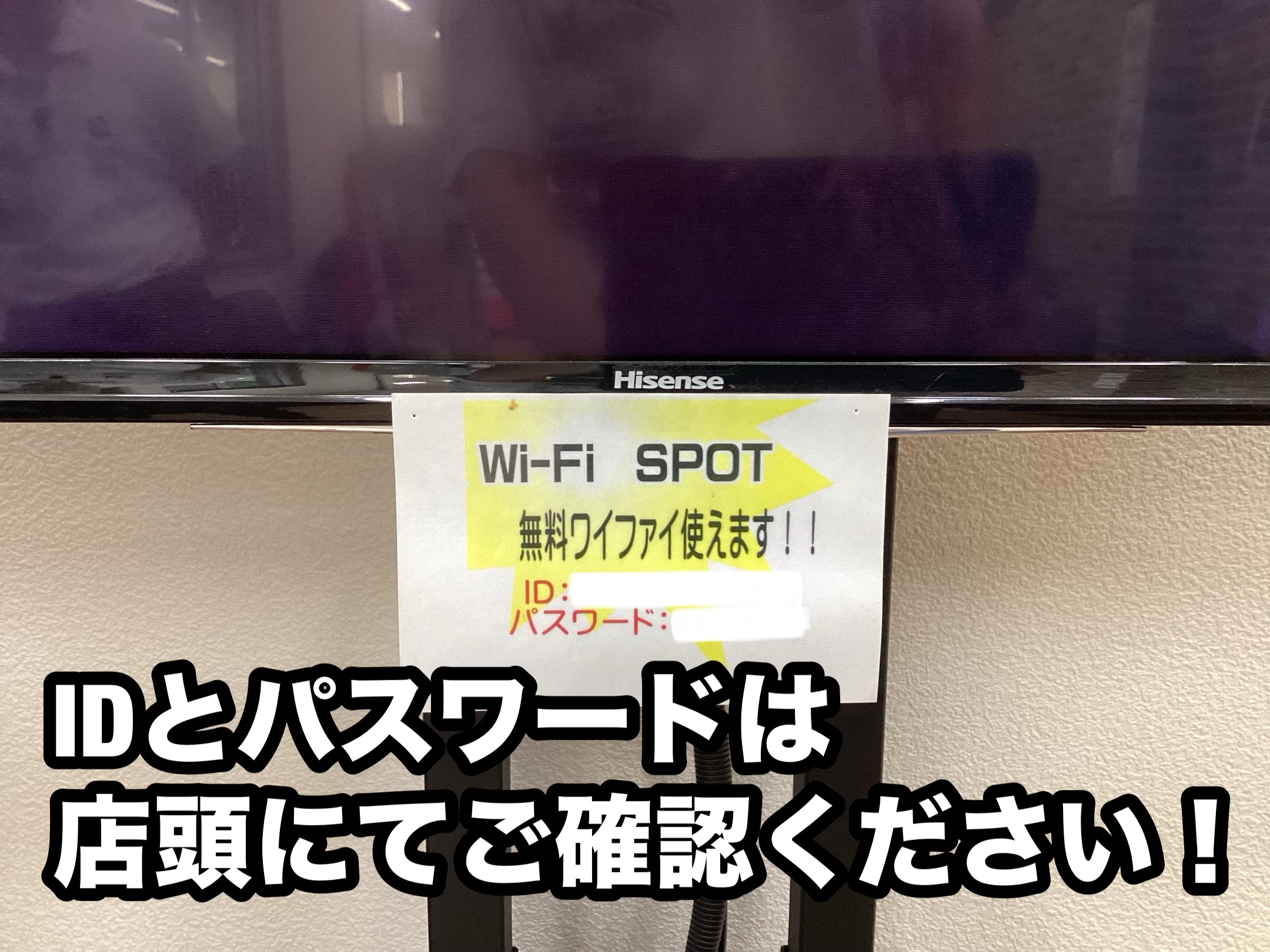 WEB記事にWi-FiのIDやパスワードは明記できませんので、ご来店いただいた際にご確認ください。