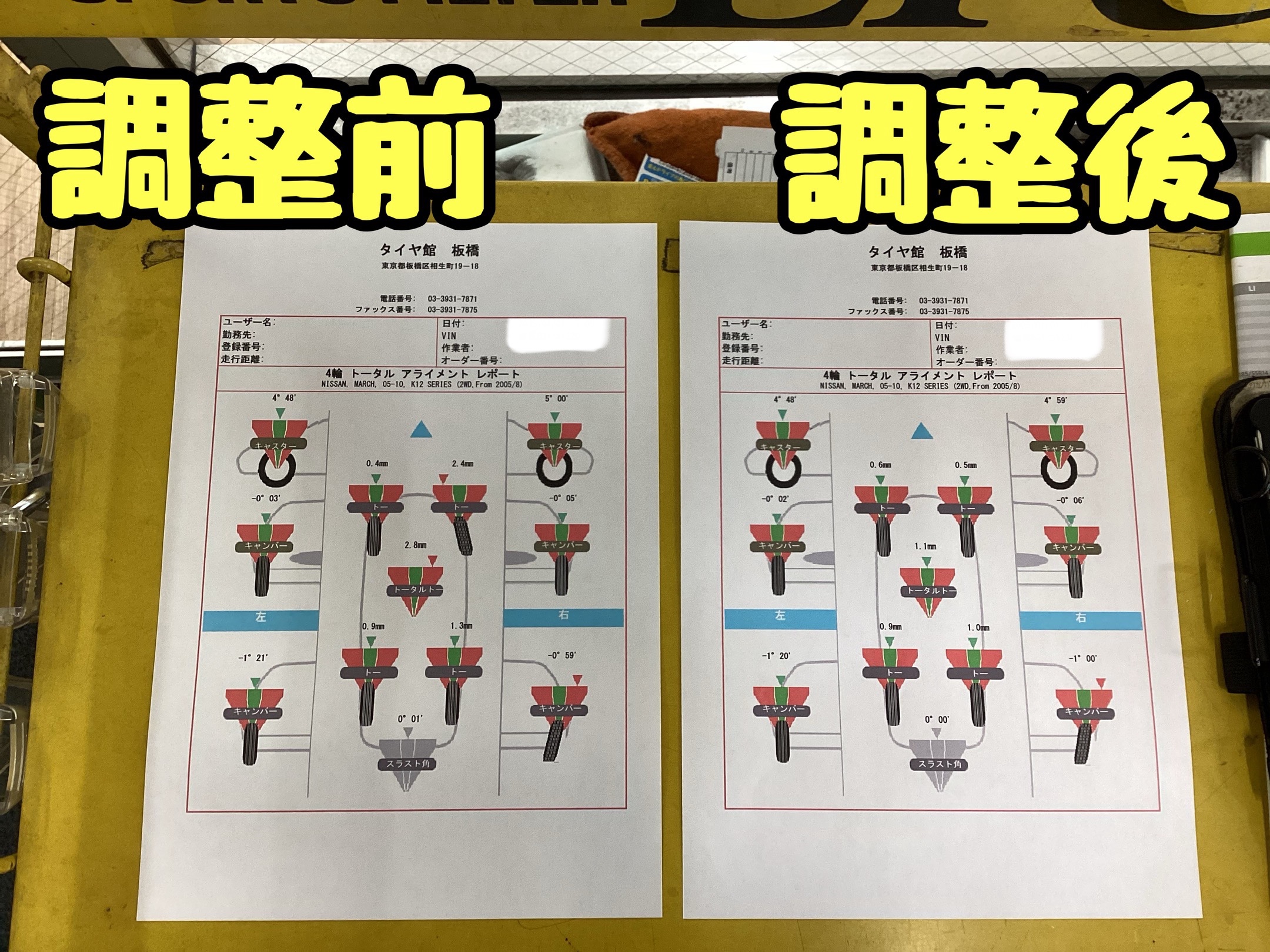 今回は【日産 マーチ】のアライメント調整のご紹介です!