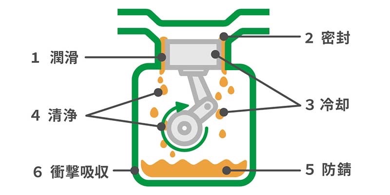 ①ピストンなど可動物を円滑に動かす潤滑作用