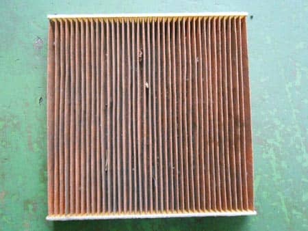 それとは別の車ですがエアコンフィルターの点検をしてみるとかなり汚れています。