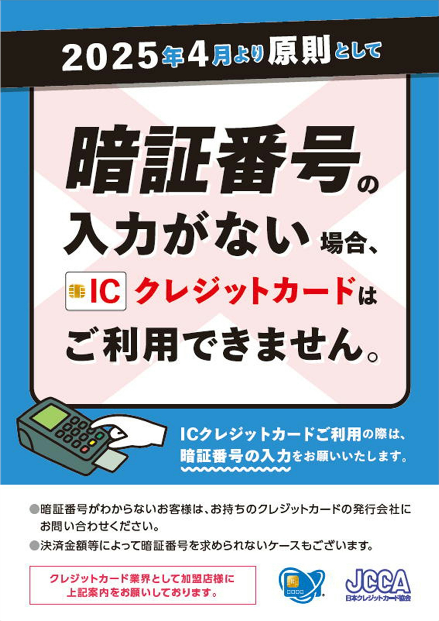 クレジットカード決済 暗証番号必須です! ご注意ください!