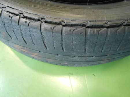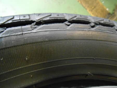 ヒビ割れの具合は、車両の保管状況や空気圧の管理でも