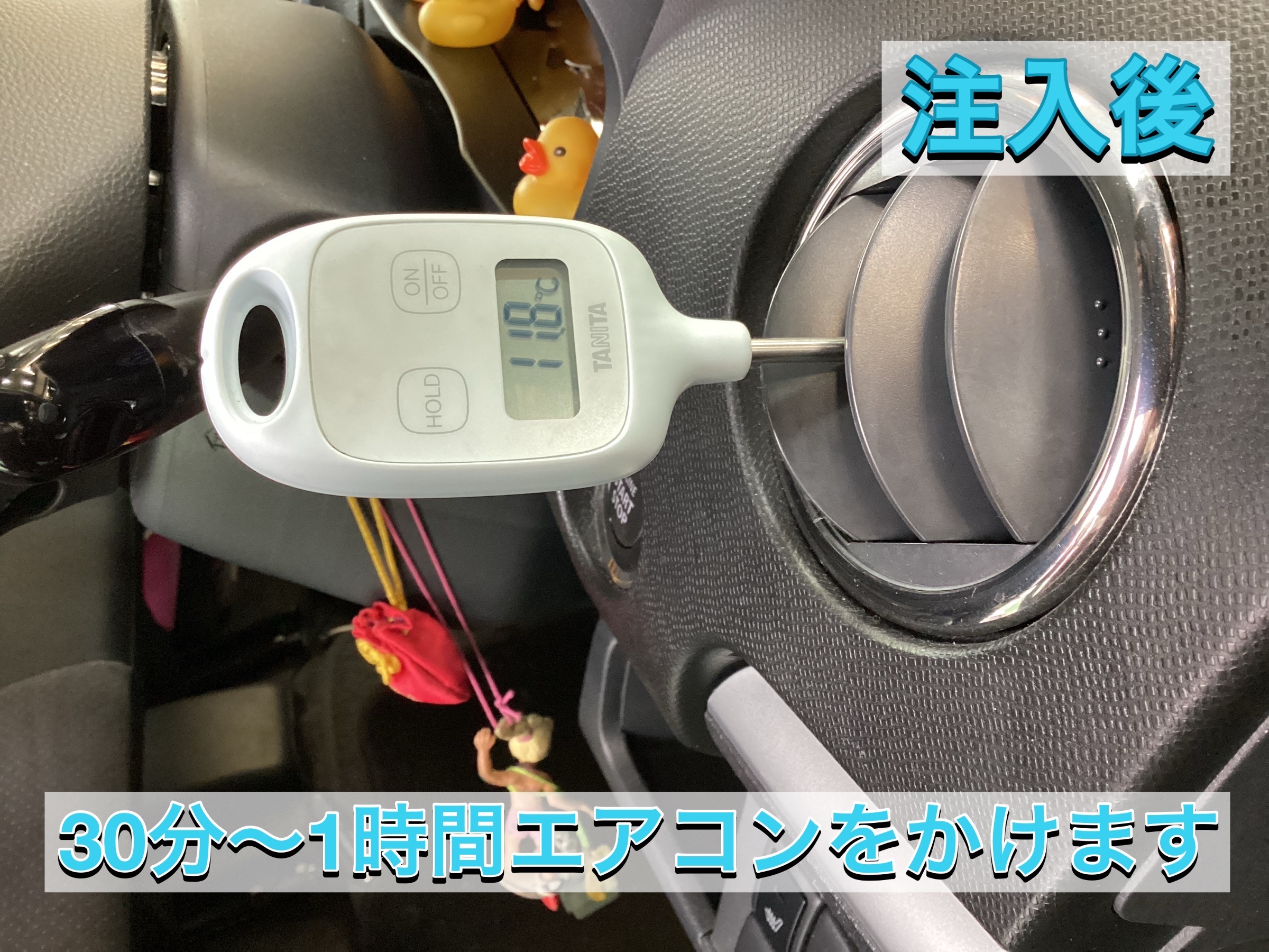 注入後は添加剤を循環させるために、30分〜1時間ほどエアコンをかけます!
