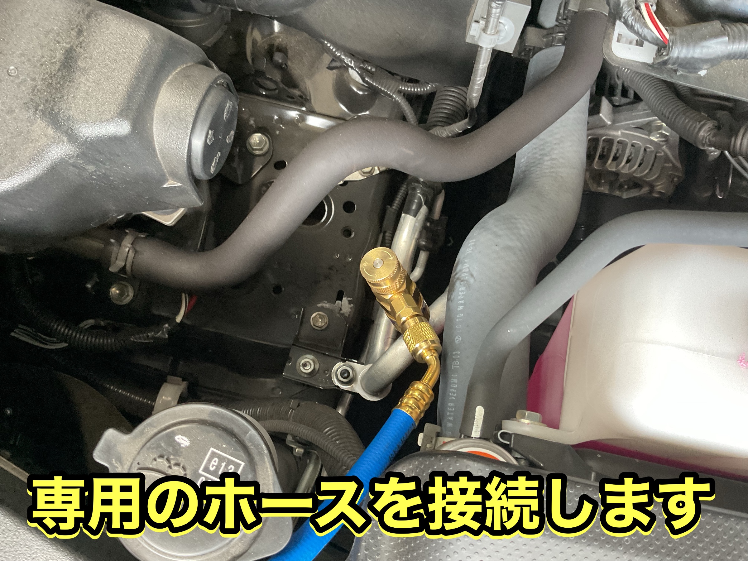 専用ホースで接続しお車のエアコンガスの経路にダイレクトに注入!