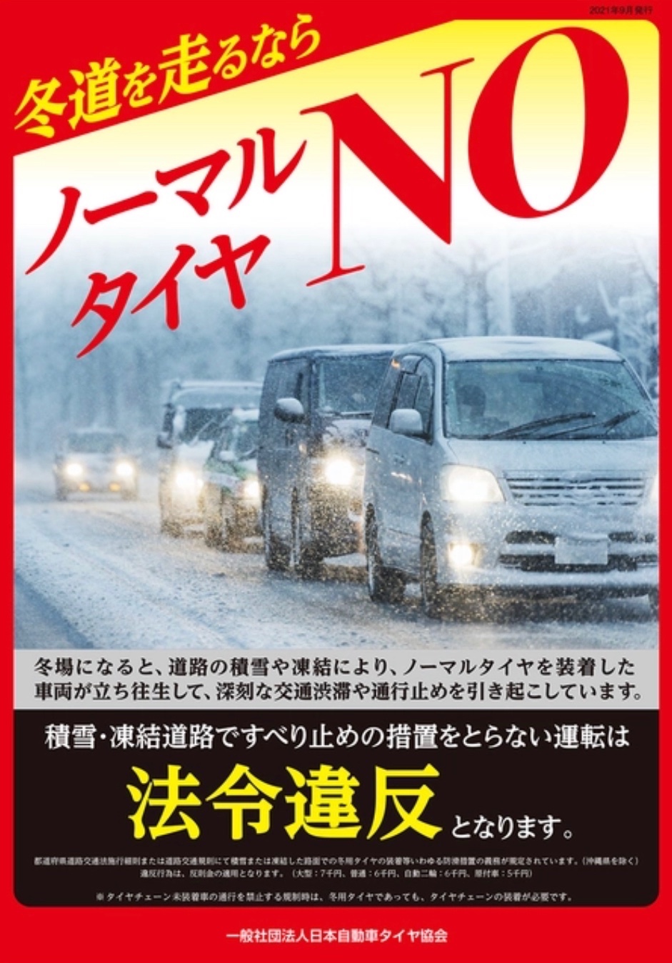 今後どうなるか判りませんが、雪、凍結対策としてスタッドレスタイヤの装着をおすすめします。