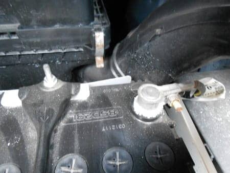 バッテリーですが、写真右の接続部分に白い粉が付着してます。