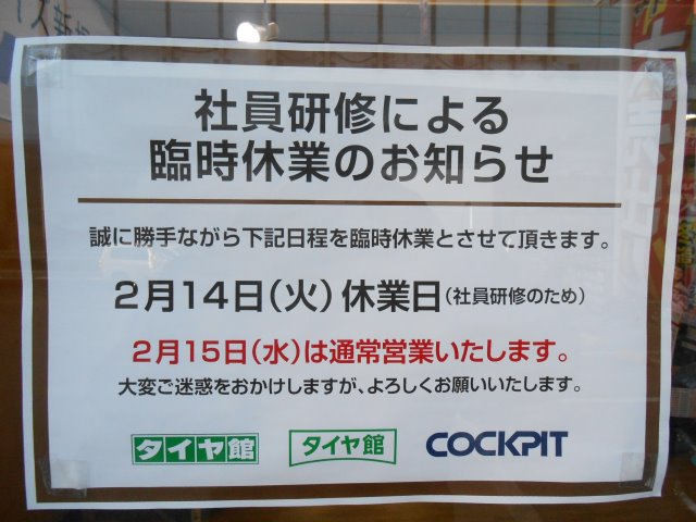 明日火曜日に社員研修の為、お休みを頂きます。