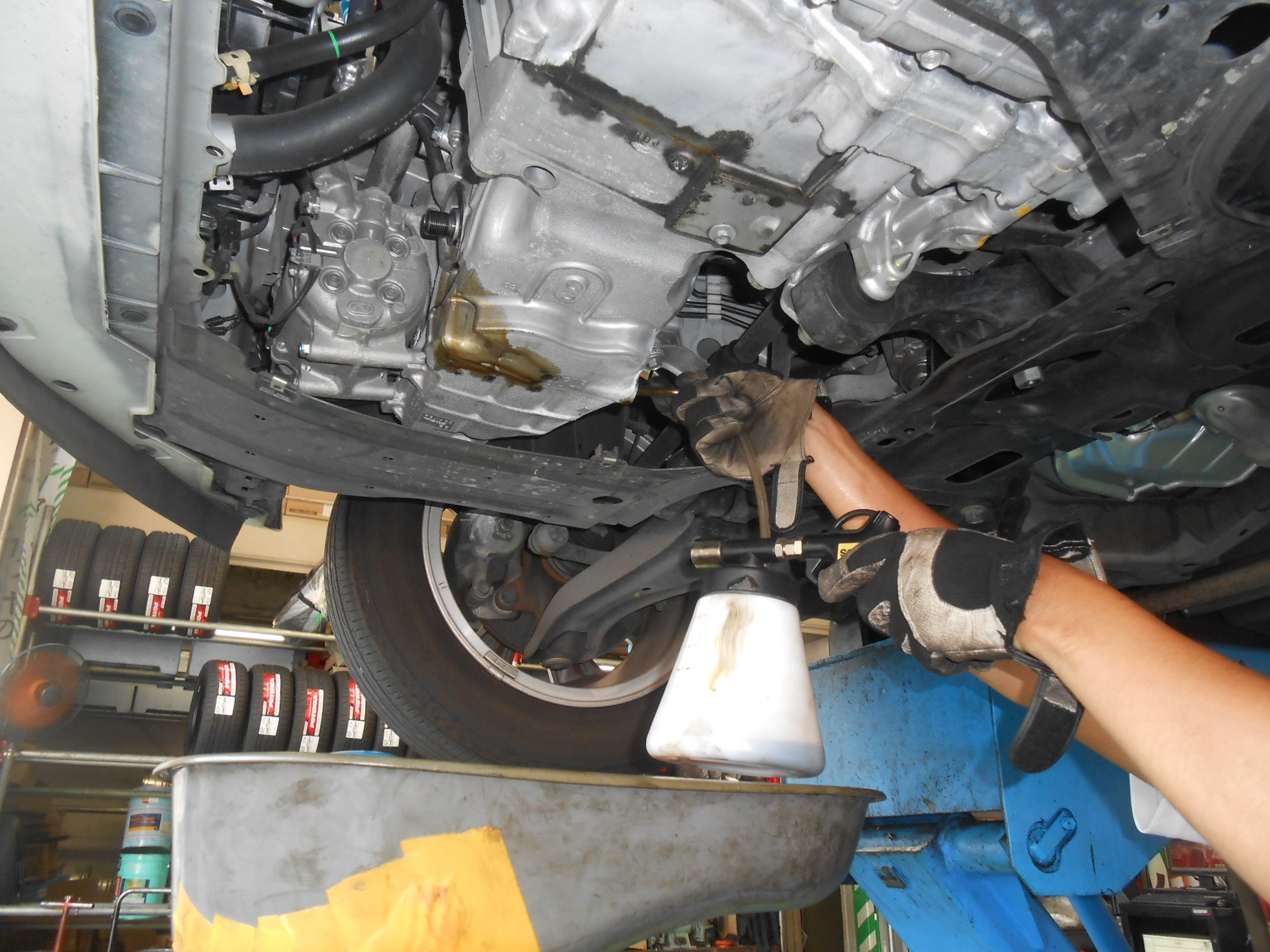 交換時、オイルパンに残るオイルを極限まで少なくして、新しいオイルを入れる努力を行っています。