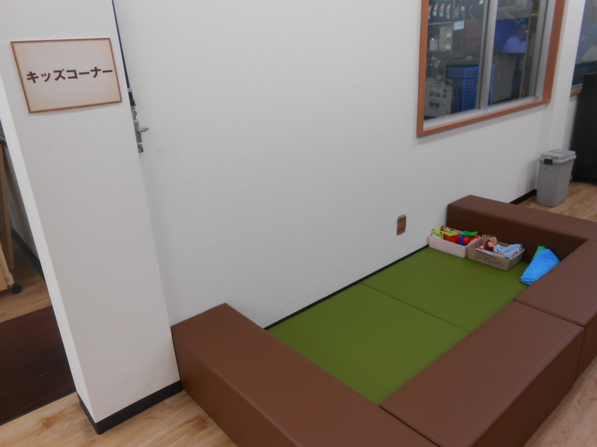 ウェイティングスペースも清潔感ありキッズコーナーも完備(分煙有)