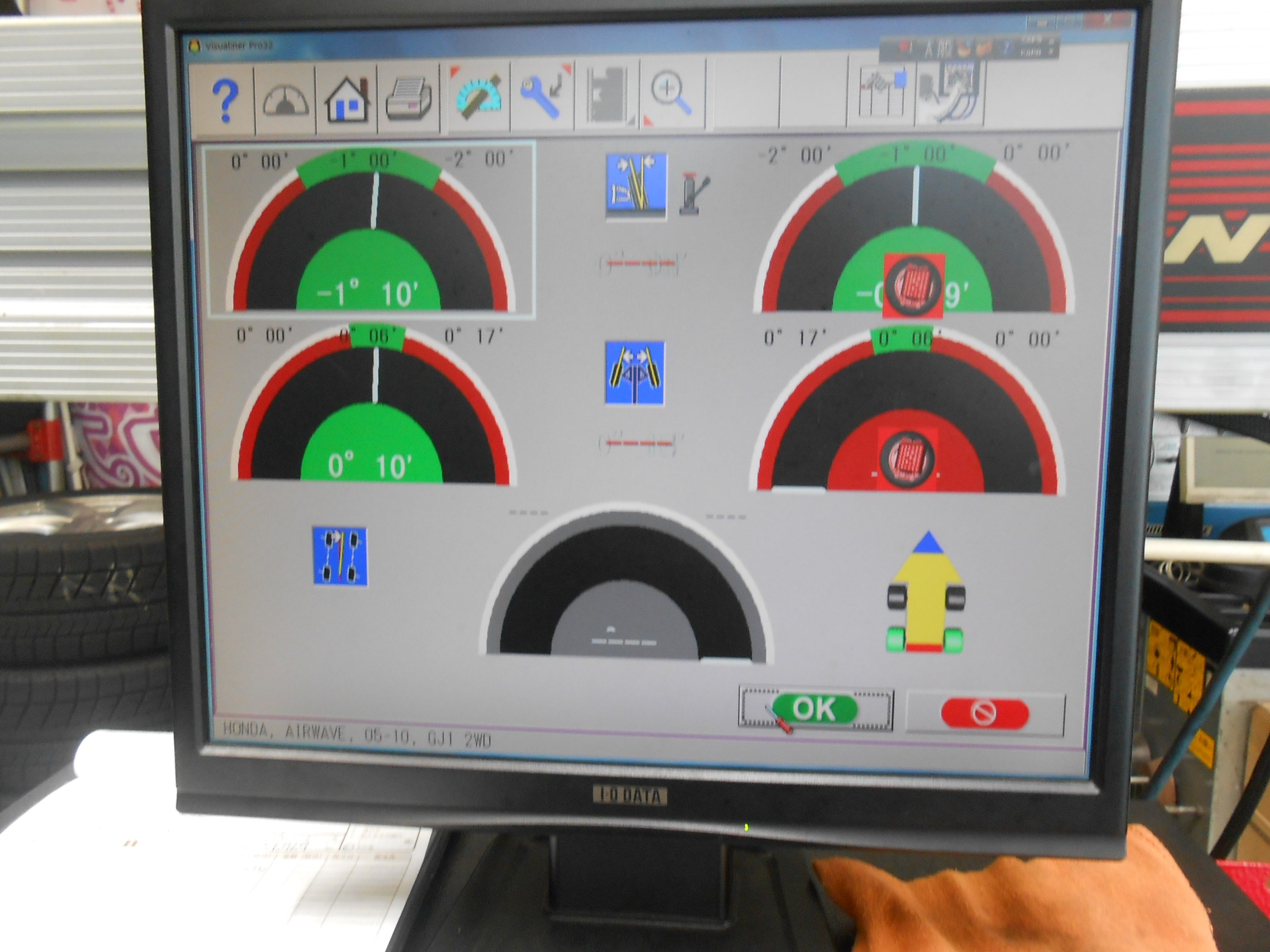 本日、ホンダ、エアウエイブのアライメント測定、調整させて頂きました。