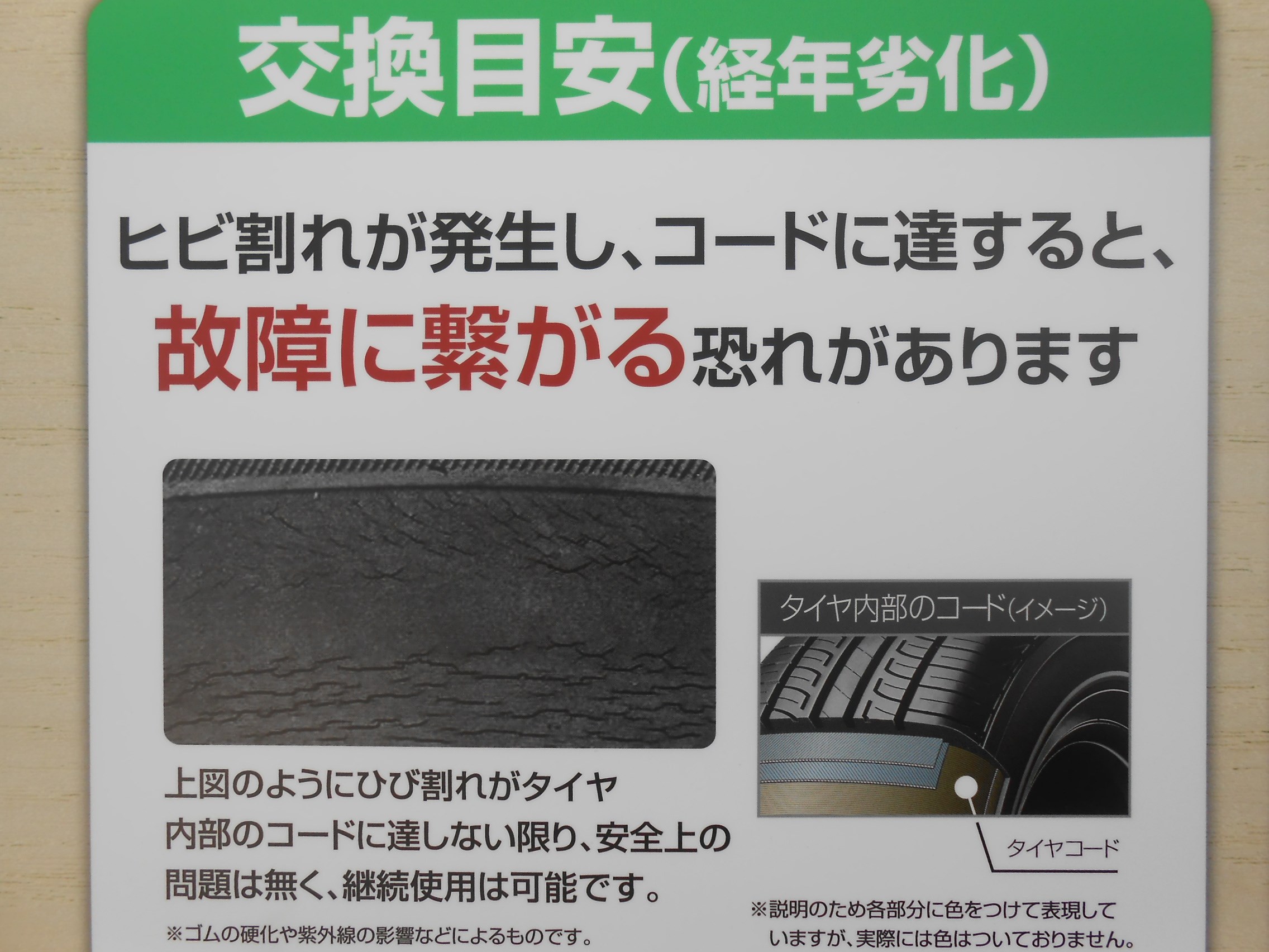 無料の安全点検をやっておりますので、いつタイヤを交換したか