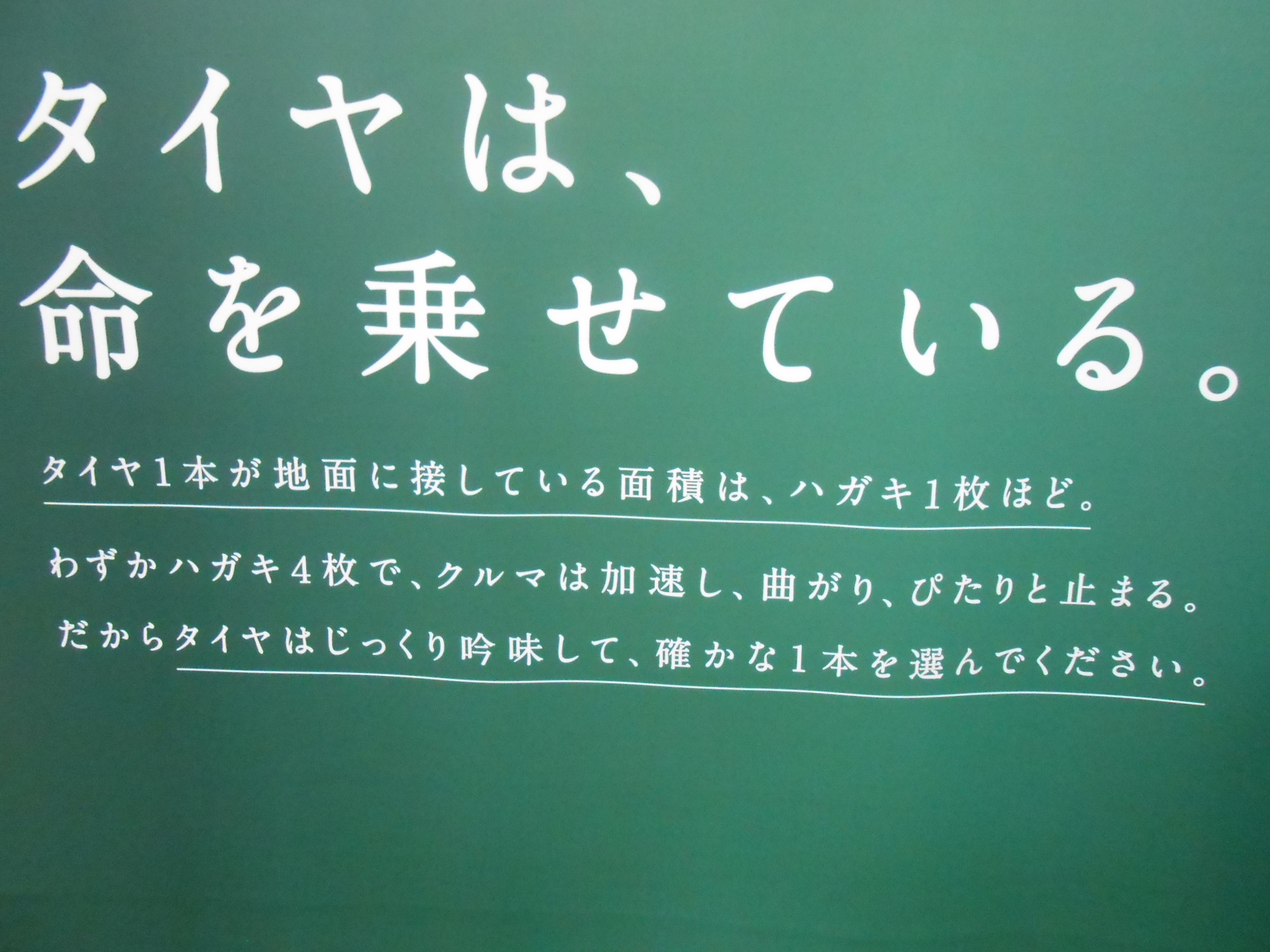 ディスカウントストアなどの駐車場ですごく滑って、タイヤを買いにきましたと